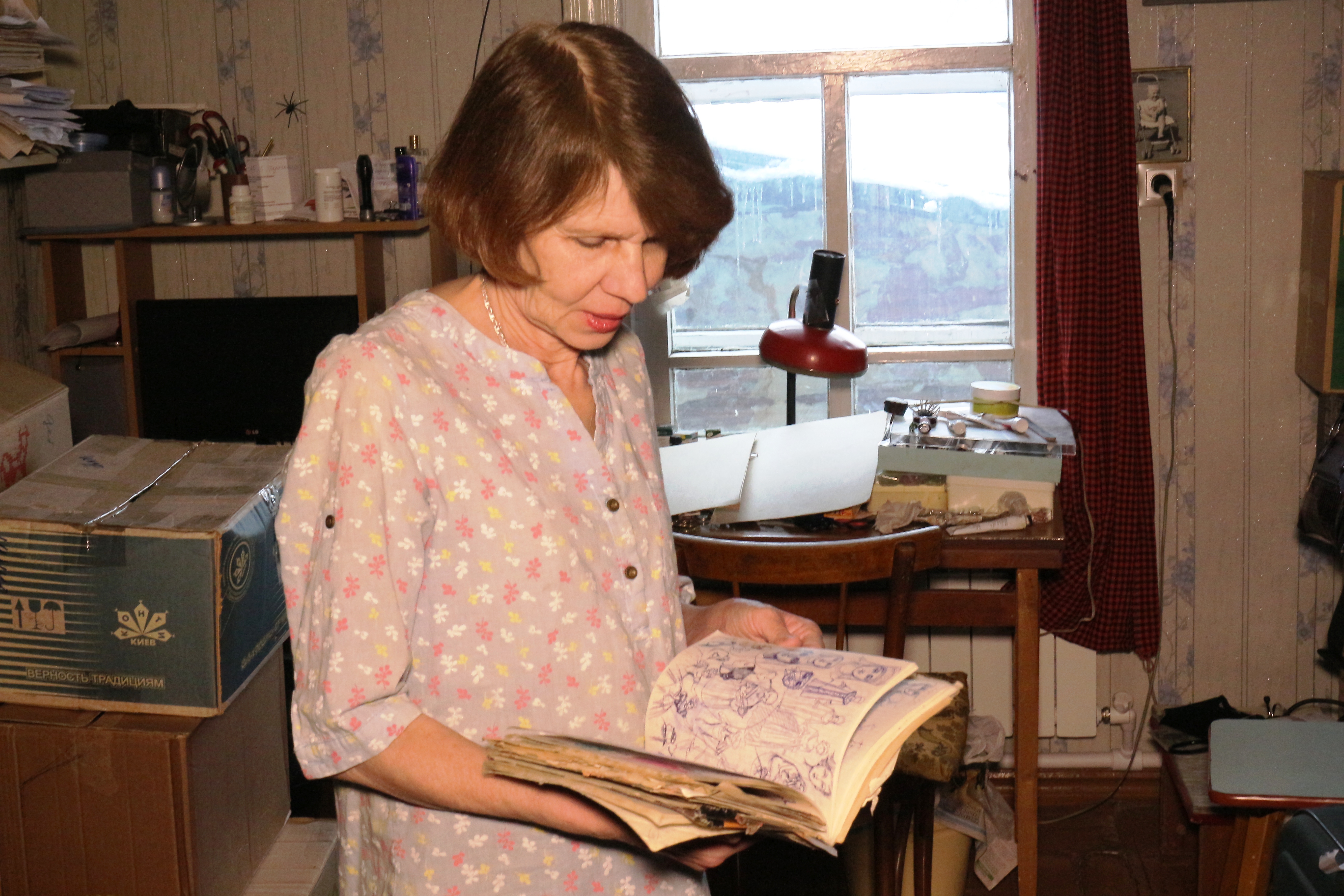Ирина Верхградская родом из Норильска, но когда в заполярном городе ухудшилась экологическая обстановка, решила уехать с маленькими детьми в Казахстан. Дети выросли, переехали в Новосибирск, два года назад решила вернуться в Сибирь и Ирина. Денег от продажи квартиры в Семипалатинске хватило на маленький дом на городской окраине, с трудом переоформила пенсию, которой хватает только на самое необходимое. Но работы свои продавать категорически отказывается.