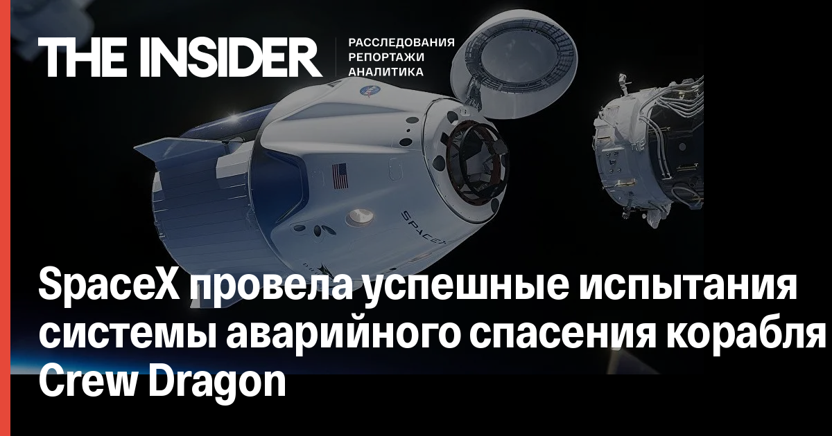 Компания SpaceX провела успешные испытания системы аварийного спасения экипажа пилотируемого корабля многоразового использования Crew Dragon. Об этом сообщает NASA.
