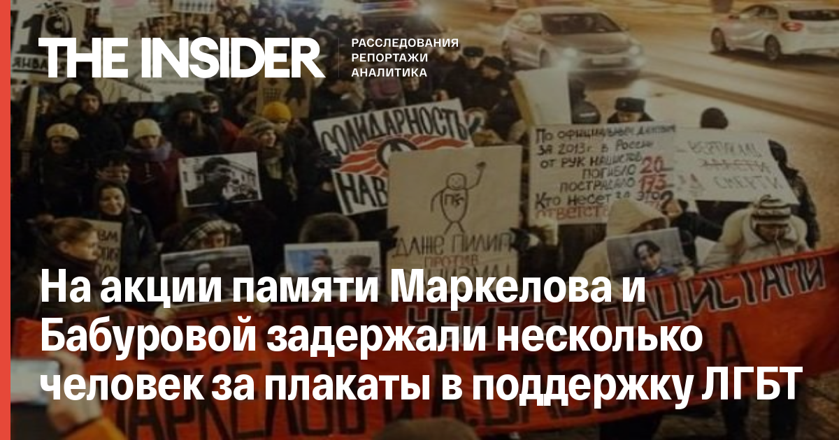 На акции памяти Маркелова и Бабуровой задержали несколько человек за плакаты в поддержку ЛГБТ