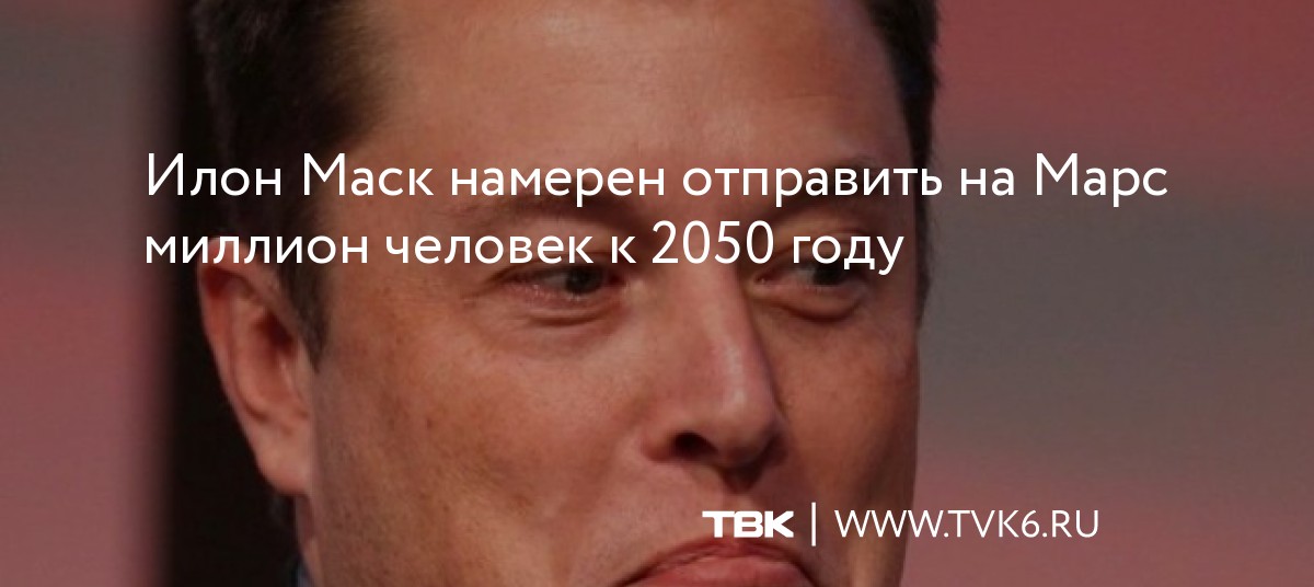 Основатель компании-производителя космической техники SpaceX, миллиардер Илон Маск рассказал о планах построить на Марсе к 2050 г. город с населением 1 млн человек.