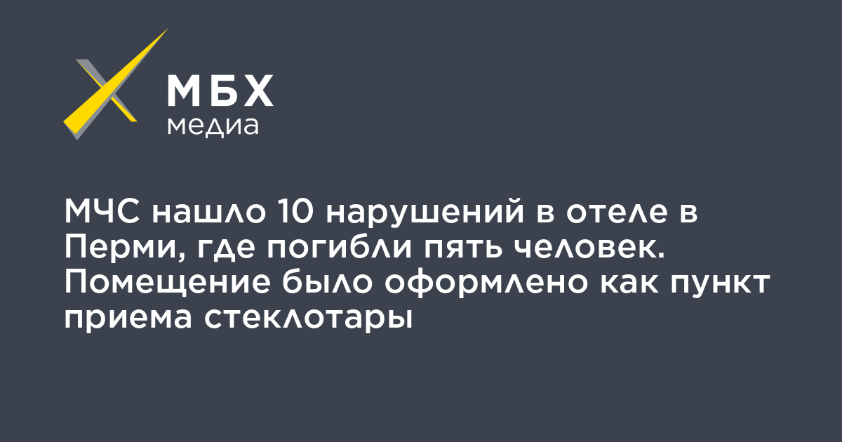 МЧС нашло 10 нарушений в отеле в Перми, где погибли пять человек. Помещение было оформлено как пункт приема стеклотары