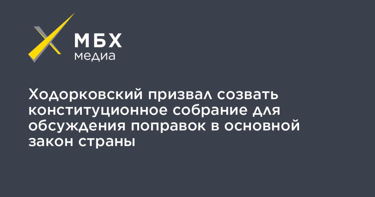 Бывший совладелец ЮКОСа Михаил Ходорковский предложил созвать конституционное собрание для обсуждения поправок в основной закон страны. Об этом он написал на своей странице в Faceboоk.