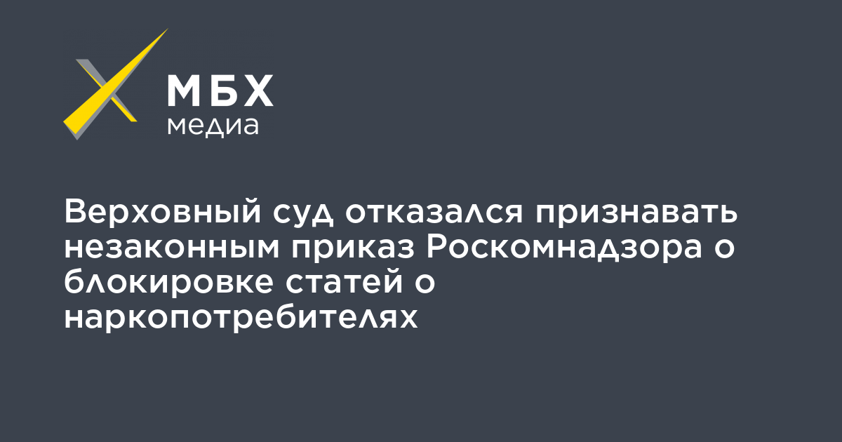 Верховный суд отклонил иск издания «Батенька, да вы трансформер», в котором самиздат требовал признать недействующим пункт приказа Роскомнадзора, МВД, Роспотребнадзора и ФНС, который позволяет блокировать статьи о наркопотребителях. Об этом сообщает корреспондент «МБХ медиа».