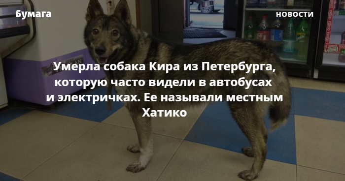 В Петербурге умерла собака Кира, хозяина которой искали десятки горожан. Из-за того, что животное часто видели в общественном транспорте якобы в поисках владельца, ее сравнивали с японским Хатико.