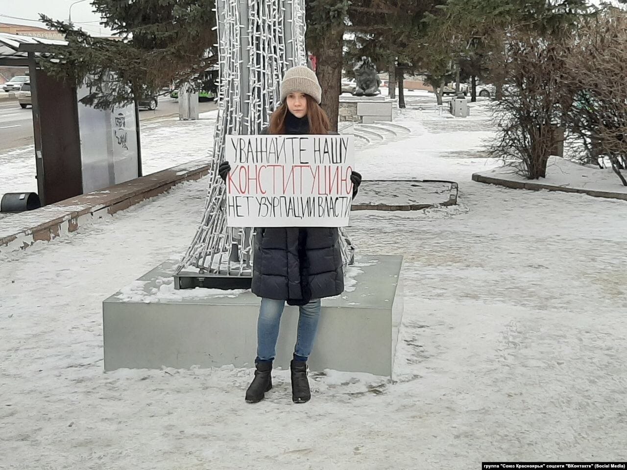 Активисты Либертарианской партии в Красноярске и "Союза Красноярья" провели серию одиночных пикетов против изменения Конституции России. Об этом активисты сообщили на странице "Союз Красноярья" соцсети "ВКонтакте".