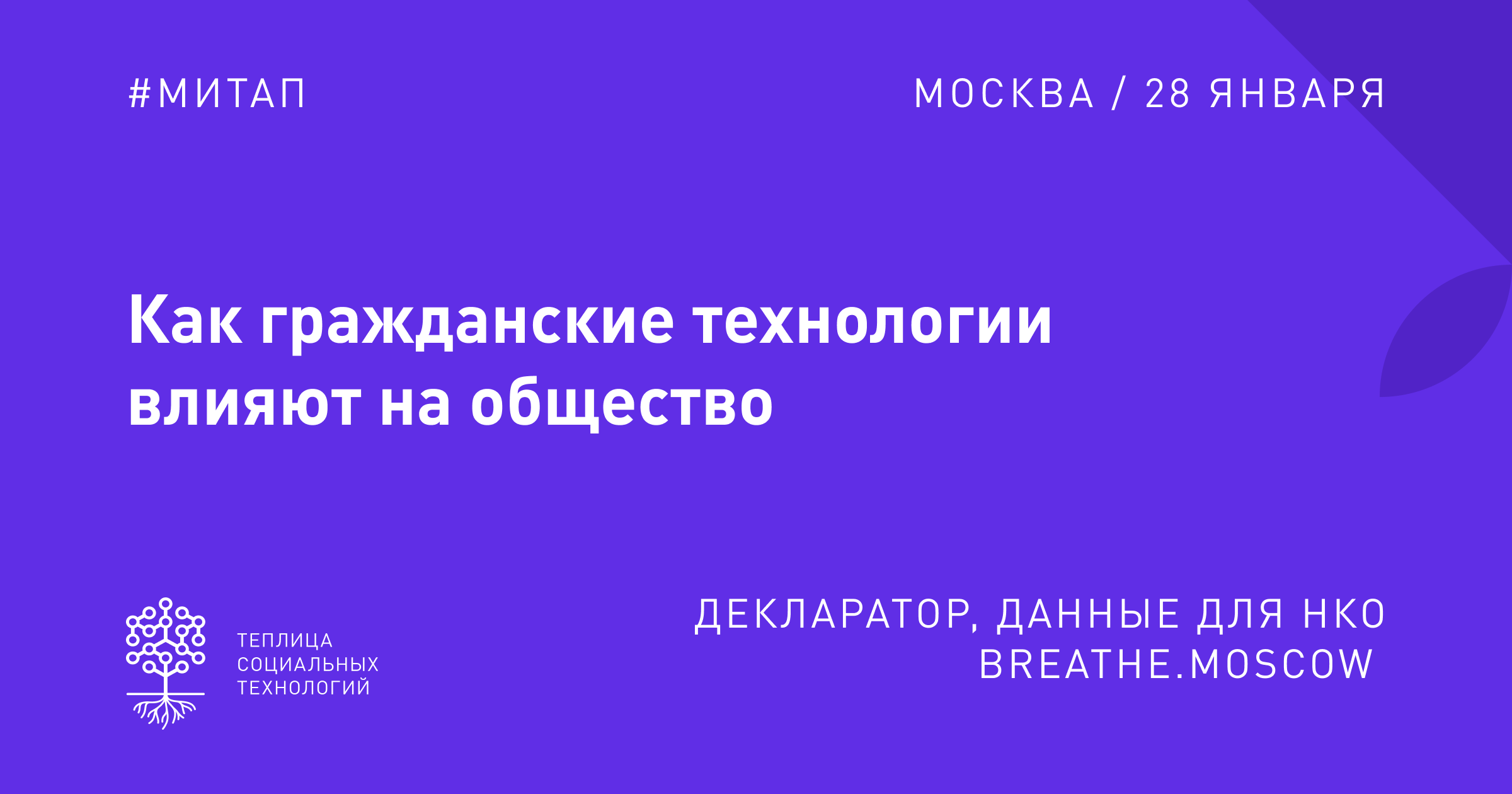 Митап «Как гражданские технологии влияют на общество?» состоится 28 января 2020 года в 19:30 в Москве.