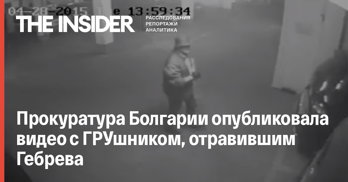 Прокуратура Болгарии опубликовала видео с сотрудником ГРУ, отравившим бизнесмена Емельяна Гебрева. На видео он перемещается между машинами на парковке отеля «Орбита», в котором находился офис Гебрева. В связи с этим в лаборатории ФБР была проведена экспертиза для установления личности, результаты пока не разглашаются.