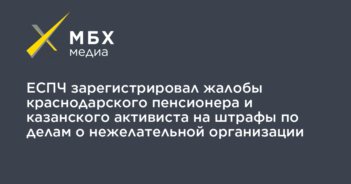 ЕСПЧ зарегистрировал жалобы краснодарского пенсионера и казанского активиста на штрафы по делам о нежелательной организации