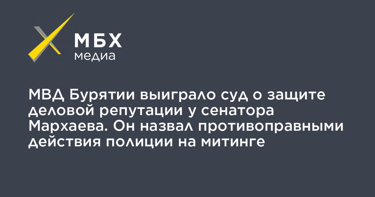 МВД Бурятии выиграло суд по иску о защите деловой репутации к сенатору Вячеславу Мархаеву из-за его выступления в Совете Федерации, во время которого он просил главу Верховного суда проверить действия полиции и Росгвардии при задержаниях на акции в Улан-Удэ 12 сентября. Об этом сообщил «МБХ медиа» адвокат Сергей Федоров.