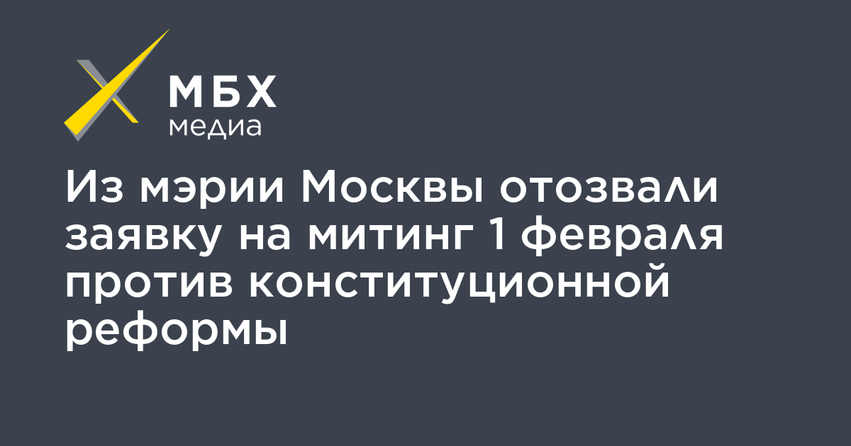 Из мэрии Москвы отозвана заявка на проведение 1 февраля акции против внесения изменений в Конституцию. Об этом «МБХ медиа» сообщил один из заявителей митинга, член Либертарианской партии Игорь Ефремов.
