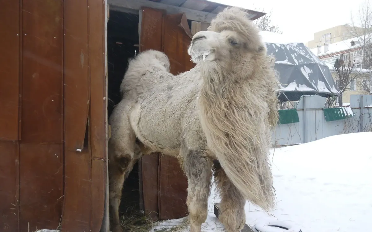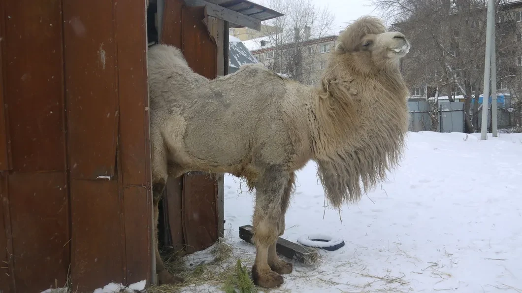 Двугорбый верблюд продолжает работать в центре Тюмени на морозе. Даже прокуратура не смогла облегчить его судьбу