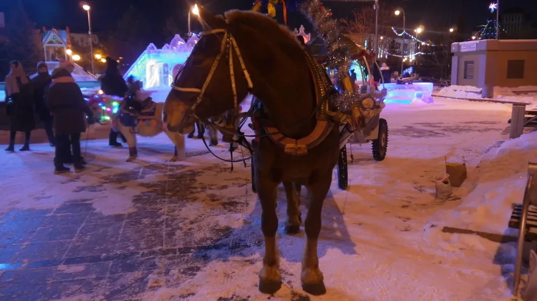 Он не один такой. Здесь, у застывшего зимой фонтана, собираются на заработки верблюд и «примкнувшие к нему» лошади, пони, ослы. Олени со спиленными рогами (чтобы не бодались) работают в упряжках неподалеку — на площади 400-летия Тюмени.