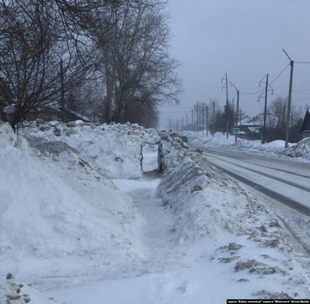 Бийск: жители на тротуаре прокопали тоннель в снегу