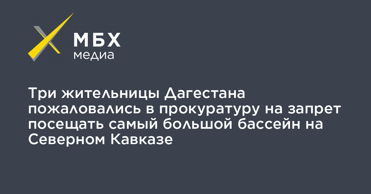 Три жительницы Дагестана пожаловались в местную прокуратуру на запрет посещать самый большой бассейн на Северном Кавказе, сообщила «МБХ медиа» Светлана Анохина, шеф-редактор портала Daptar, посвященного проблемам дагестанских женщин.