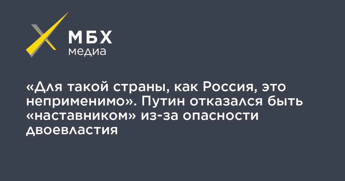 «Для такой страны, как Россия, это неприменимо». Путин отказался быть «наставником» из-за опасности двоевластия