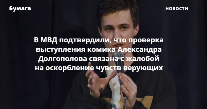 В МВД подтвердили, что проверка выступления комика Александра Долгополова связана с жалобой на оскорбление чувств верующих