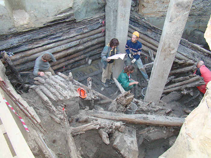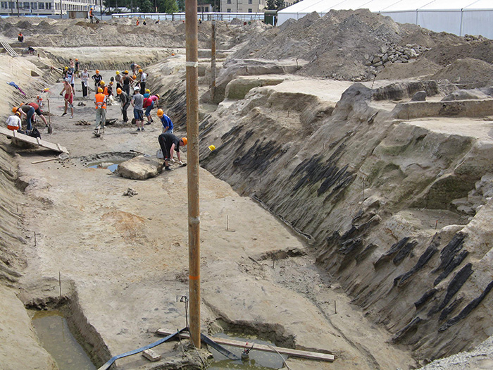 — Раскопки на Охте начались в 1992 году, когда эта территория еще не считалась археологической. Тогда мы (Институт истории материальной культуры РАН — прим. «Бумаги») планировали найти остатки памятников, которые упоминаются в исторических документах — крепости Ниеншанц и Ландскрона. Мы провели там разведочные исследования и подготовили документы для постановки территории на охрану, так как [на ней могли находиться] объекты культурного наследия. В 2001 году утвердили два памятника — крепость Ниеншанц на мысу и центральную часть города Ниена на правом берегу Охты.