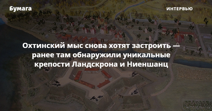 — С охраной памятников на Охтинском мысу существуют серьезные проблемы. В 2001 году на охрану поставили крепость Ниеншанц и могильник. В конце наших археологических работ в 2009 году мы направили письмо в КГИОП Петербурга, где уточнили информацию по старым и обозначили вновь выявленные памятники — крепость Ландскрона, мысовое городище, неолитические стоянки. Но их на охрану так и не поставили.