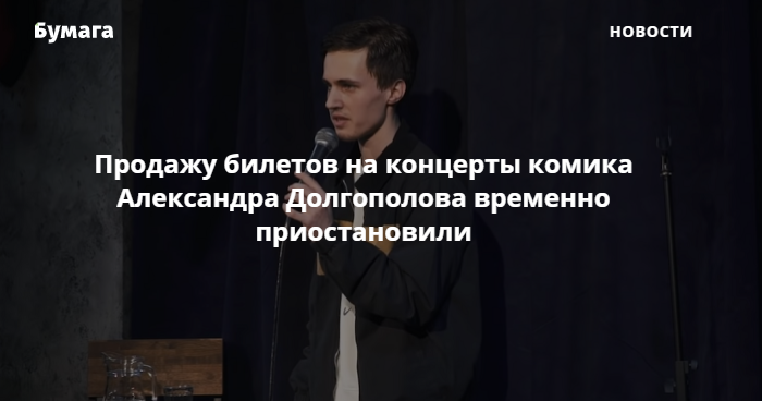 Продажа билетов на новые концерты стендап-комика Александра Долгополова, информацию о котором выясняет МВД, временно приостановили. Об этом «Бумаге» рассказал концертный директор комика Армен Гандилян.