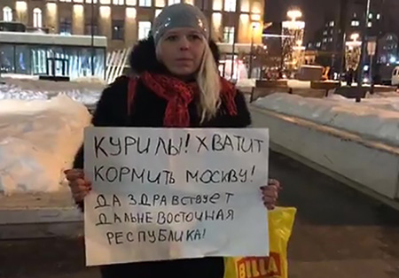Дело о призывах к сепаратизму (часть 1 статьи 280.1 УК; до 4 лет) на Полюдову завели из-за одиночного пикета, который она провела 31 января 2019 года в рамках акции "Новая стратегия-31". В материалах дела говорится, что Полюдова, "действуя в сепаратистских целях", стояла с плакатом на Тверской улице в Москве. На плакате было написано: "Курилы, хватит кормить Москву. Да здравствует Дальневосточная республика". "Таким образом, по мнению экспертов-лингвистов, она призывала к проведению референдума по вопросу выхода из состава Российской Федерации", - сказал Соловьев.