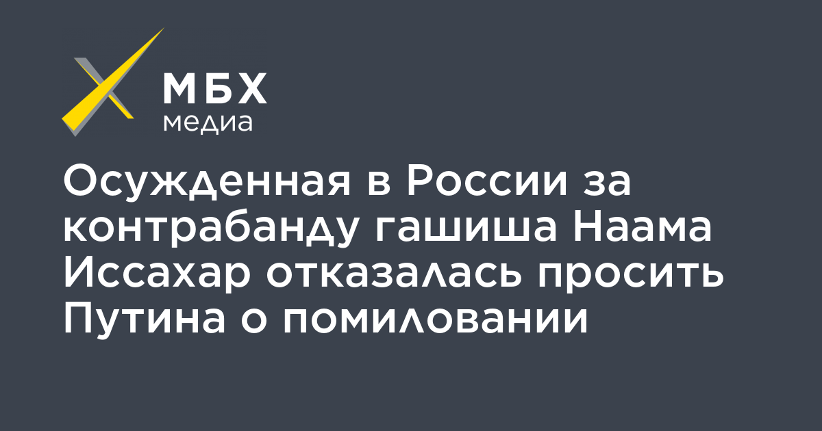 Израильтянка Наама Иссахар, осужденная в России за контрабанду нескольких грамм гашиша отказалась просить о помиловании президента Владимира Путина, об этом сообщает «Интерфакс».