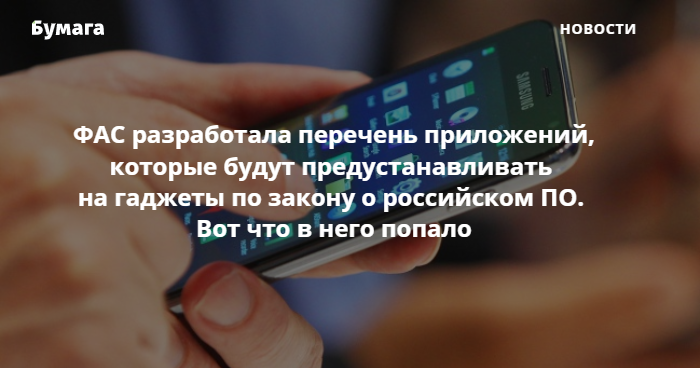 Федеральная антимонопольная служба (ФАС) разработала список приложений для реализации закона о предустановке российского ПО, который запрещает продавать в России гаджеты без отечественного программного обеспечения. Об этом сообщили на сайте ведомства.