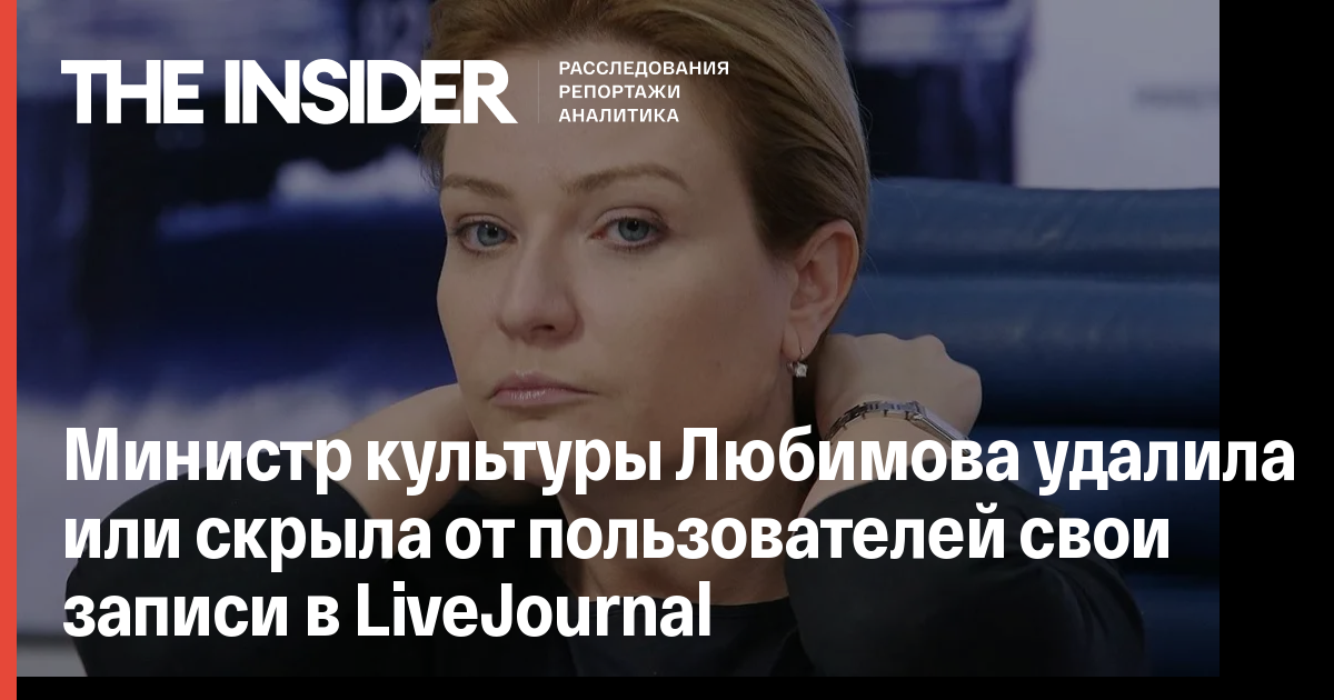 Министр культуры Любимова удалила или скрыла от пользователей свои записи в LiveJournal