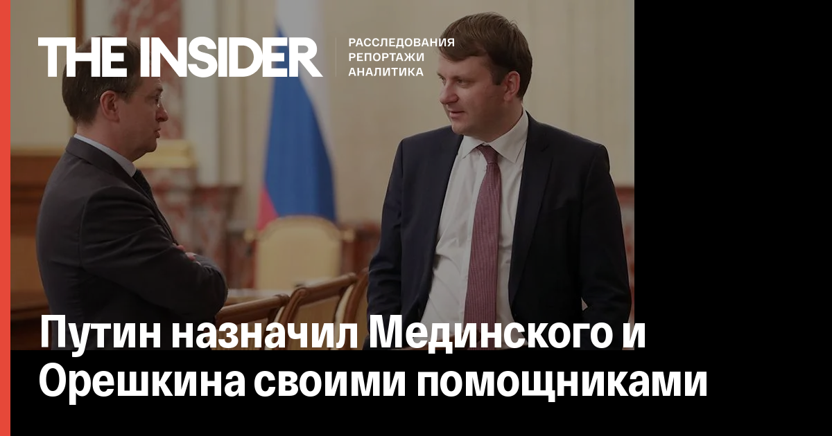 Президент РФ Владимир Путин назначил бывшего министра культуры Владимира Мединского и бывшего министра экономического развития своими помощниками, сообщает РИА «Новости».