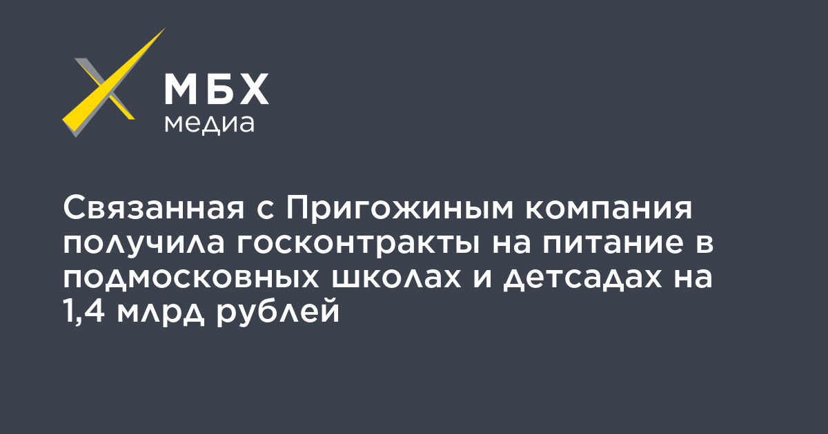 Связанная с бизнесменом Евгением Пригожиным компания «Школьник-ЮЗ» получила два госконтракта на организацию питания в школах и детских садах в Балашихе на общую сумму 1,4 млрд рублей. Соответствующие тендеры «МБХ медиа» обнаружило на портале госзакупок.