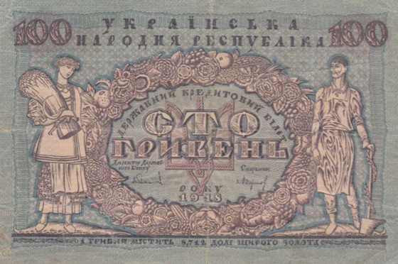 Георгий Нарбут. Денежная купюра номиналом сто гривен Украинской Народной Республики. 1918 — На мой взгляд, красной нитью через всю книгу — говоришь ли ты о начале XX века или о начале XXI — проходит идея борьбы с российским и советским наследием: «бывшая метрополия, борьба с колониальным прошлым»... Это главная идея работы?
