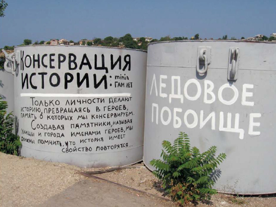 Гамлет Зиньковский, Роман Минин. Консервация истории. 2010. Стрит-арт-проект в рамках II фестиваля медиа и перформансов «Балаклавская одиссея». Севастополь, Украина — Что опаснее всего для современного искусства — отсутствие денег, драйва, новых смыслов?