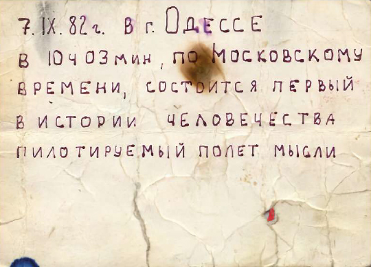 Игорь Чацкин. Записка-атрибут к первой акции Игоря Чацкина и Юрия Лейдермана. 1982. Бумага, чернила. 15х21 см — Удалось ли Украине сейчас до конца отделиться от пресловутого советского проекта? Произошло ли это с людьми, с художниками?
