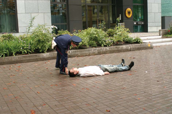 Мыкола Ридный. Лежи и жди. Акция. 2006. Видеодокументация: Ивонна Голибьевская — Так что такое украинский компонент в искусстве?