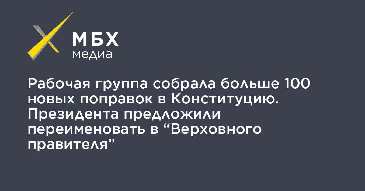 Во время заседания рабочей группы по подготовке поправок в Конституцию предложили более 100 новых пунктов. Среди них переименование должности президента в «верховного правителя», об этом пишет «Коммерсант».