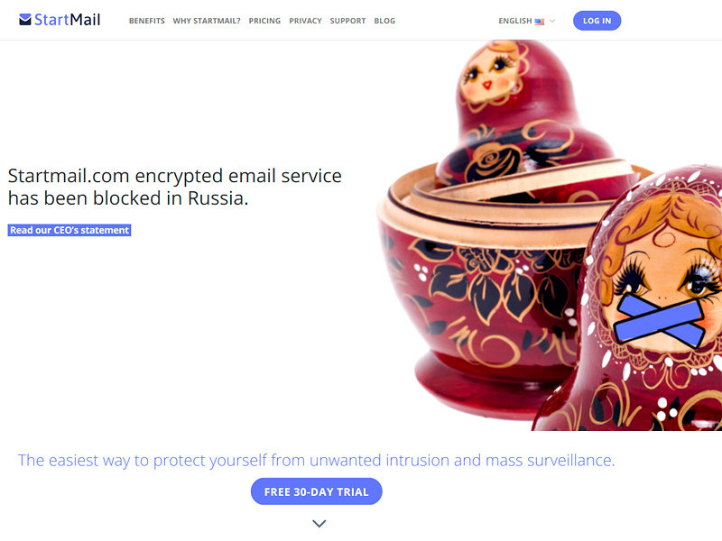 "StartMail никогда не регистрировался в этом реестре и не связывался с российскими властями, а также StartMail не предоставлял никакой информации о своих пользователях российским властям. Похоже, что в настоящее время IP-адреса почтовых серверов StartMail блокируются, и веб-сайт StartMail.com больше не доступен из России", – отмечается в свежем сообщении. Блокировку сервиса в компании назвали неправомерной.