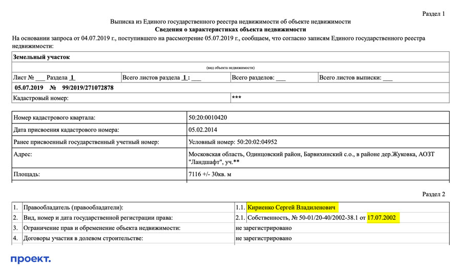 Выписка из Росреестра