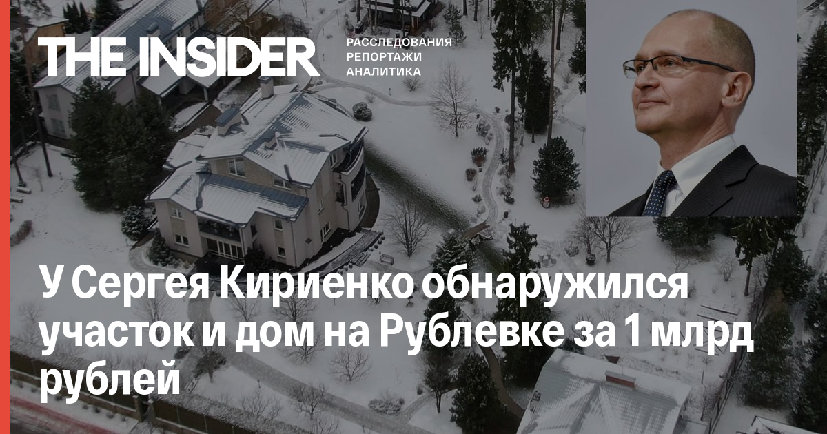 Первый заместитель главы администрации президента Сергей Кириенко владеет недвижимостью на Рублевке на общую сумму около 1 млрд рублей. Об этом говорится в опубликованном сегодня расследовании издания «Проект», и это подтверждает выводы The Insider.