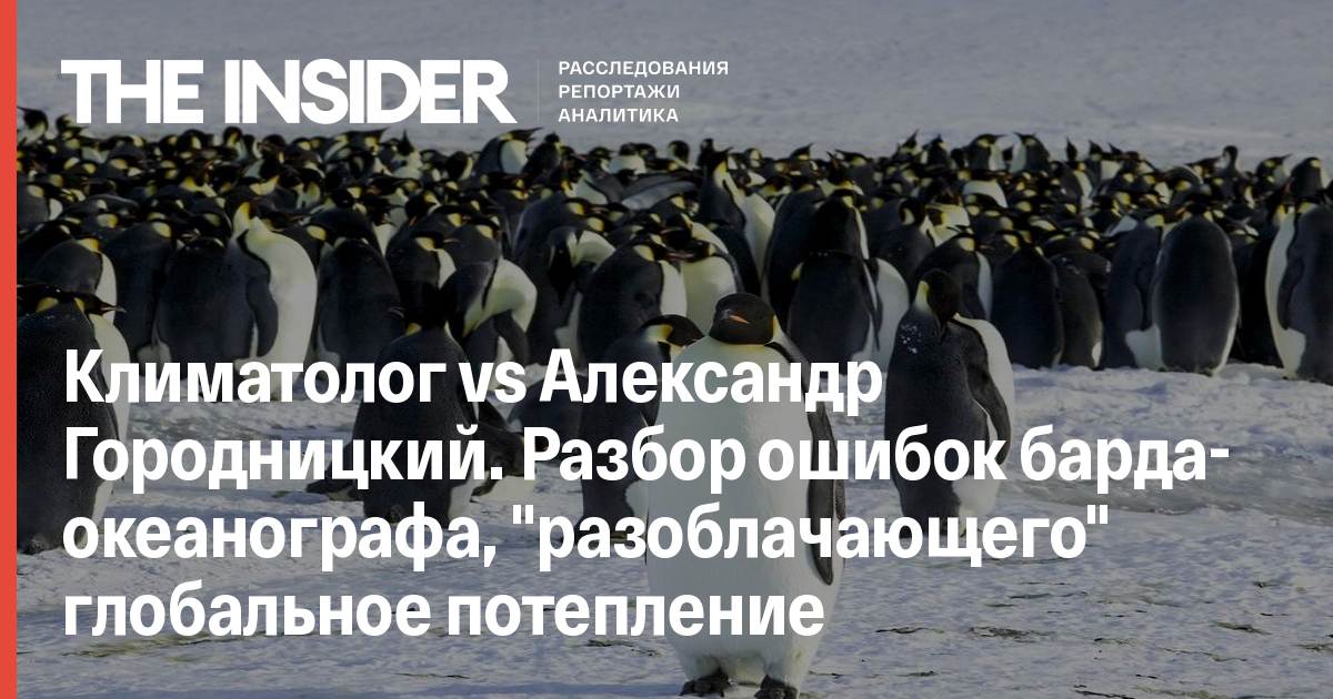 The Insider уже публиковал материал климатолога Александра Чернокульского, ответившего на скандальную статью Юлии Латыниной, которая отрицает реальность глобального потепления. Помимо журналистки «разоблачением» потепления занялся и известный бард Александр Городницкий, статья которого стала более весомой, так как этот 86-летний музыкант по основной профессии геофизик и неплохо владеет научной терминологией. Городницкому в сегодняшнем спецномере газеты «Троицкий вариант. Наука», посвященном потеплению климата, ответил Алексей Екайкин, ведущий научный сотрудник Лаборатории изменений климата и окружающей среды ААНИИ. С согласия «Троицкого варианта» The Insider публикует статью Екайкина, где он разбирает основные ляпы Городницкого, приводит основные доказательства глобального потепления и объясняет, почему нового ледникового периода ждать не стоит.