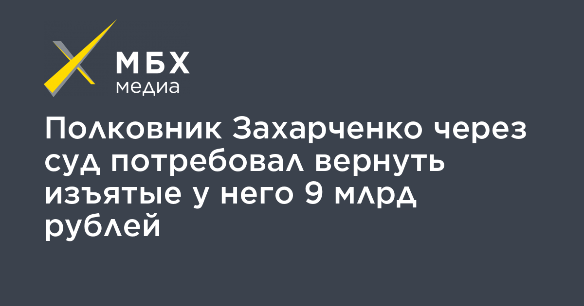 Полковник Захарченко через суд потребовал вернуть изъятые у него 9 млрд рублей