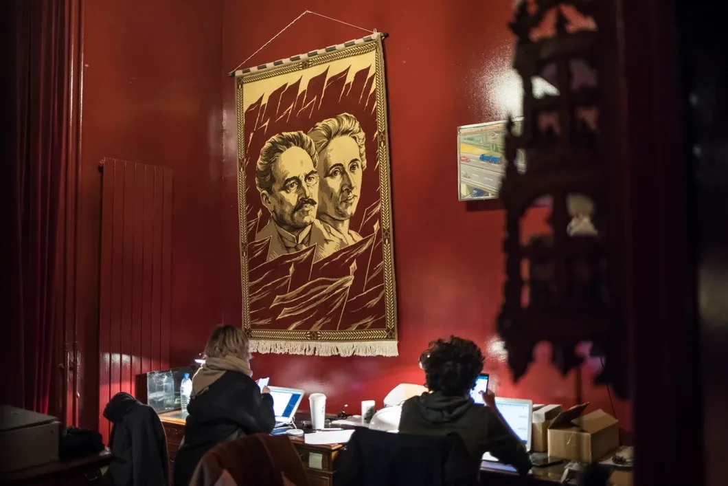 В Берлине многолюдный проект «Дау» обустроился в глубинах театра, все еще носящего столь подходящее имя Максима Горького. В квартале от него — университет, где преподавал Гегель и стоит бронзовый Маркс. Другой Маркс, но уже с щуплым Энгельсом расположился в сквере по соседству. Другими словами, гнездо было выбрано осознанно и точно.