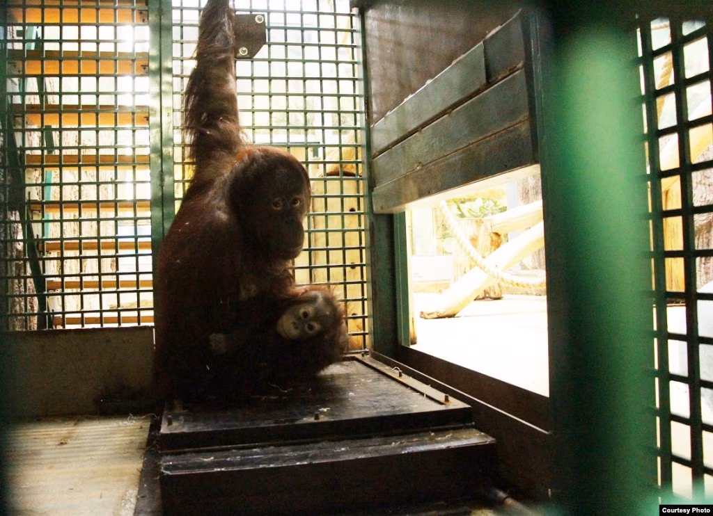 Самка орангутана Нонна родилась в 1995 году и прибыла в Калининградский зоопарк в 2016 году. 23 ноября 2018 г. у нее родился детеныш, который чуть позже получил кличку Оле.