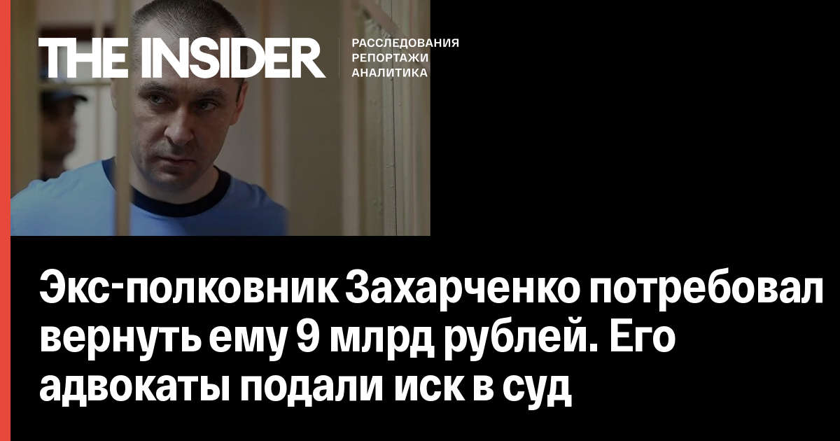 Экс-полковник Захарченко потребовал вернуть ему 9 млрд рублей. Его адвокаты подали иск в суд
