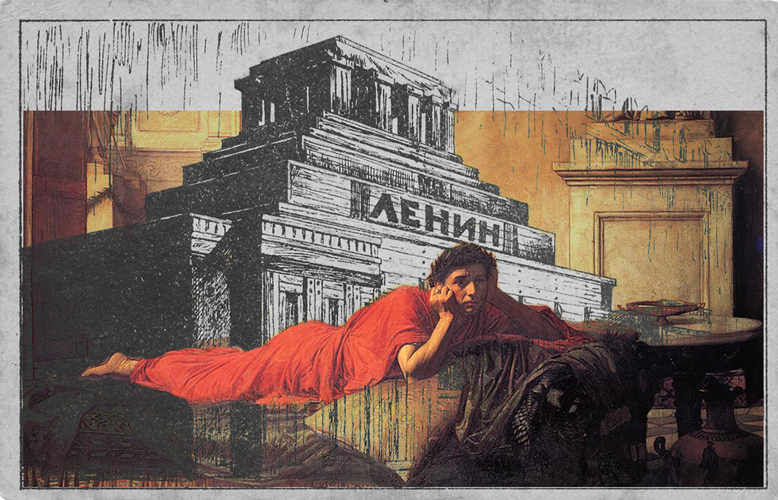Порфирный склеп Нерона и возникающий вокруг него религиозный культ очевидным образом метят в Мавзолей Ленина. Дело в том, что к 1930 г. планировалось заменить второй временный мавзолей, по-прежнему из дерева, на роскошный из красного, то есть порфирного, гранита. Разобравшись с эзоповой аурой нероновского склепа, посмотрим, что происходит вокруг него. Одна из заплаканных женщин опознает в явлении Тюхэ материализацию амулета Нерона и величает ее вестницей жизни. Таким образом, за вроде бы незначительное доброе дело — искреннее внимание к коринфянке Тюхэ, представительнице «малых сих», — император получает в награду ее любовь и преданность.