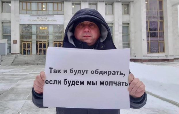 Уфимский активист пикетировал Госсобрание РБ, требуя снизить тарифы за услуги ЖКХ
