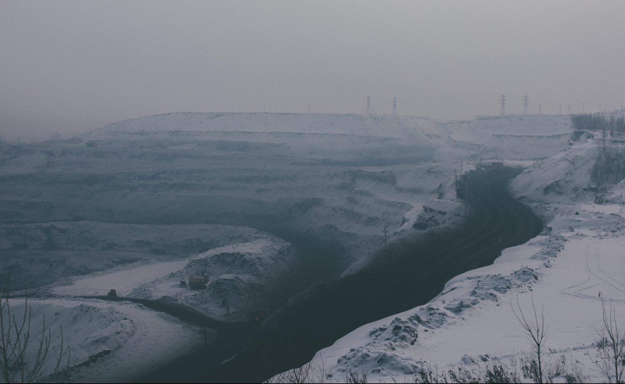 Мы добираемся до края Бачатского через сугробы и кучи строительного мусора. Глубина карьера — почти 300 метров: на его дне могли бы одновременно поместиться главное здание МГУ и несколько небоскребов Москвы-Сити. С высоты отвала круглосуточно гудят и грохочут многотонные БелАЗы, шагающие экскаваторы, тонущие в густой угольной пыли и метановых испарениях, кажутся крошечными.