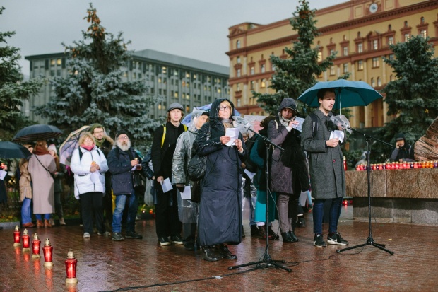 «Людей расстреливали тайно – мы делаем память о них публичной», так звучит лозунг «Возвращения имен». 29 октября, в канун Дня памяти жертв политических репрессий, над Лубянской площадью в Москве звучат имена погибших в СССР. Участники приходят к Соловецкому камню, чтобы произнести имена, представленные «Мемориалом». Многие называют имена своих близких, ставших жертвами политических репрессий.