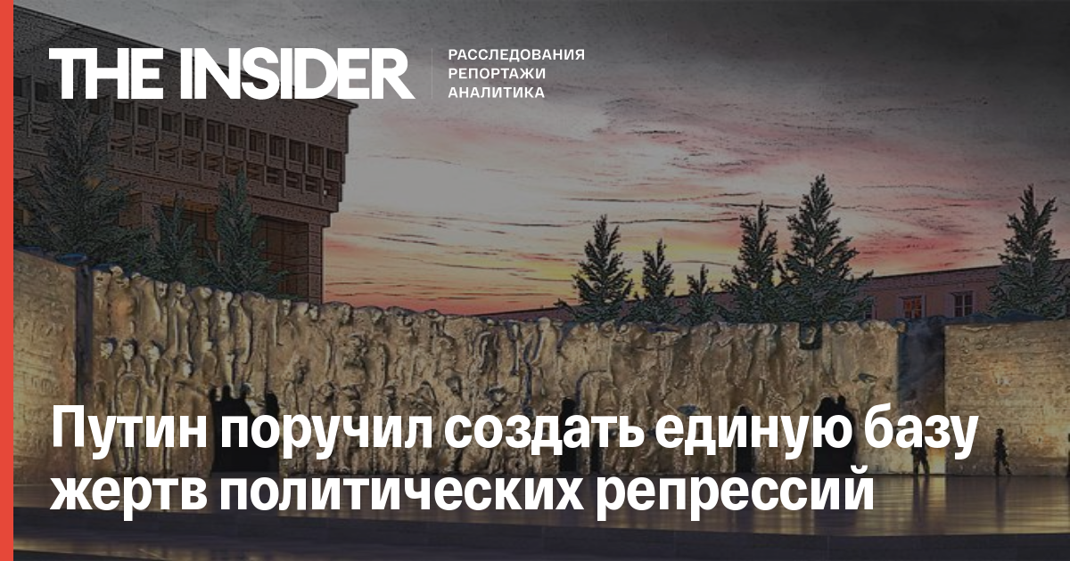 Президент Владимир Путин поручил администрации президента вместе с ФСБ, МВД, ФСИН и Росархивом рассмотреть вопрос о создании единой базы данных жертв политических репрессий, сообщает «Интерфакс». Об этом говорится в перечне поручений, которые глава государства сформулировал после декабрьского заседания СПЧ.