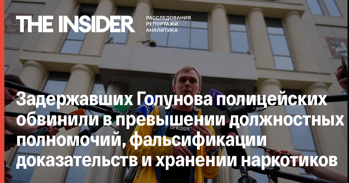 Задержавших Голунова полицейских обвинили в превышении должностных полномочий, фальсификации доказательств и хранении наркотиков