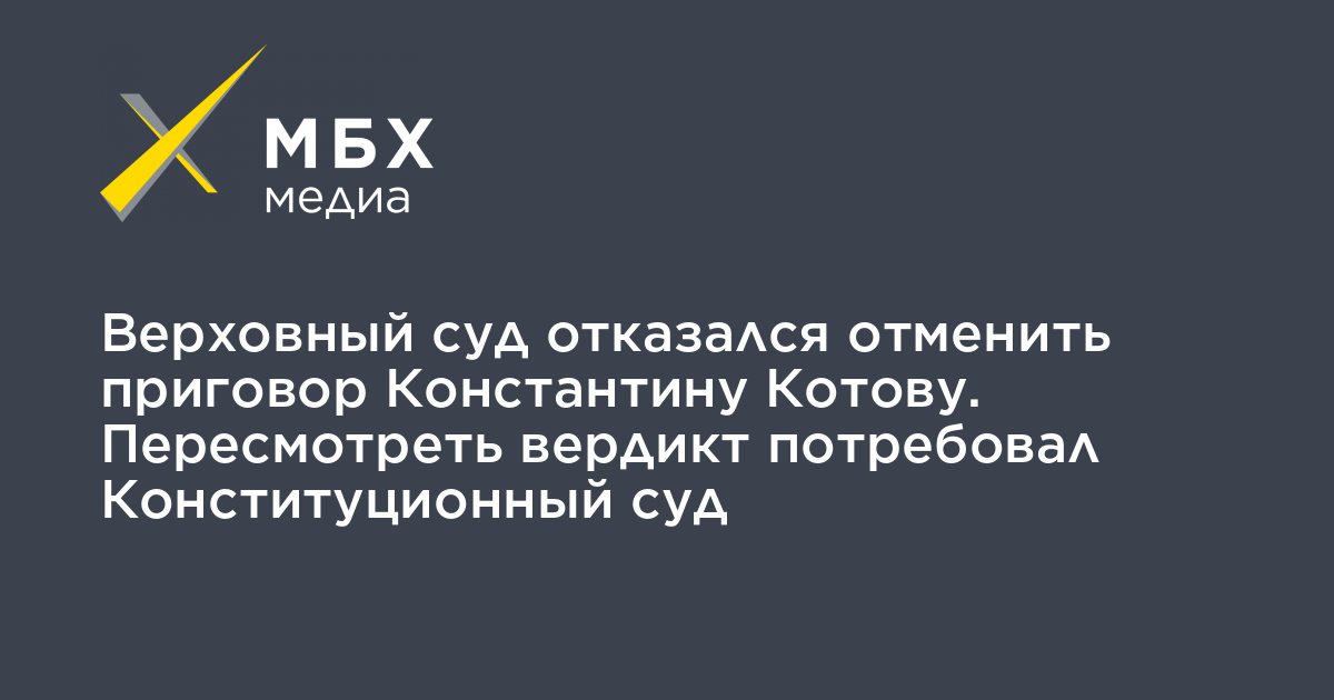 Верховный суд отказался отменить приговор Константину Котову. Пересмотреть вердикт потребовал Конституционный суд