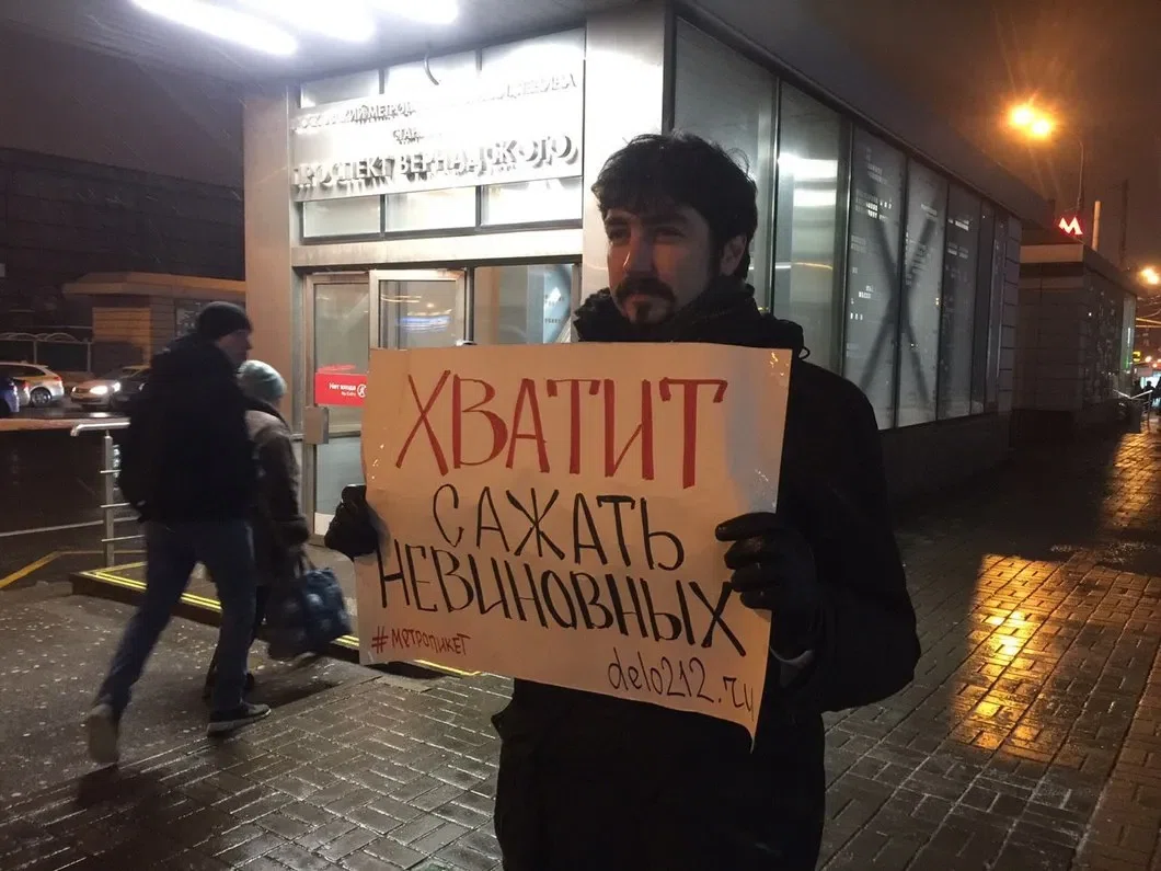 В Москве несколько десятков человек вышли к станциям метро с плакатами за свободу политических заключенных. Организаторы еженедельной акции объявили, что сегодня пикеты проходят в поддержку фигурантов «московского дела» Егора Лесных и Максима Мартинцова, которым ранее Мосгорсуд оставил приговоры без изменения.